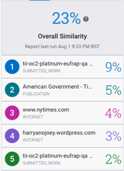 Το ποσοστό ομοιότητας δείχνει τοποσοστό του κειμένου που ταιριάζει με υπάρχουσες πηγές. Δεν σημαίνει απαραίτητα λογοκλοπή. Είναι φυσιολογικό να υπάρχουν αντιστοιχίσεις, ειδικά όταν χρησιμοποιούνται παραθέματα και αναφορές.
