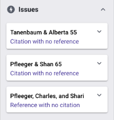 Αναγνωρίζει τον αριθμό παραπομπών, τον αριθμό αναφορών και το στυλ παραπομπών που έχει χρησιμοποιηθεί (MLA ή APA). Ο αριθμός των παραπομπών πρέπει να είναι ίσος ή μεγαλύτερος από τον αριθμό των αναφορών.