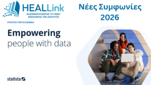 On behalf of the Hellenic Academic Libraries Link (HEAL-Link), we would like to inform you that access to Statista is now available. Statista is a leading data and research platform that supports academic teaching and research by providing reliable, expert-curated content. It provides access to millions of statistics, graphs, infographics, reports, and markets and consumers insights, covering more than 170 industries and 150 countries, with full source transparency and clear references.