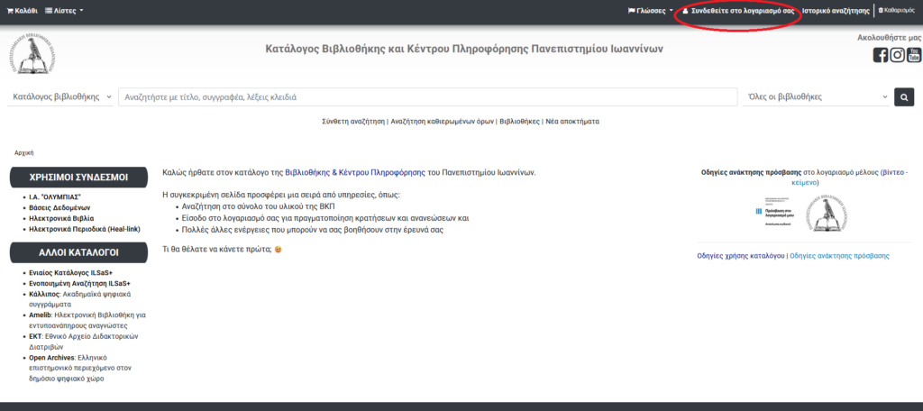 Πηγαίνετε στη διεύθυνση: https://uoi-opac.seab.gr/